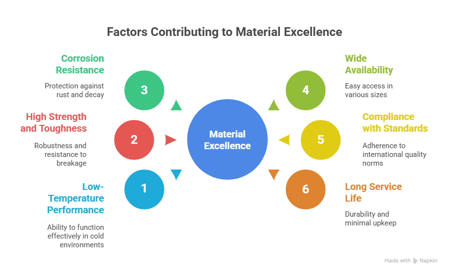 • ASTM A420: Governs carbon steel pipe fittings for low-temperature service.